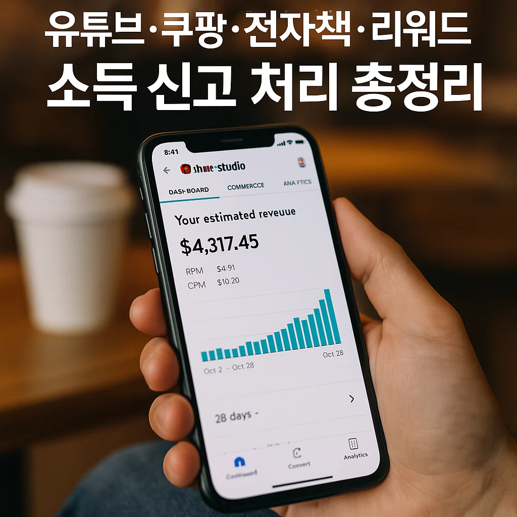 유튜브·쿠팡·전자책처럼 매달 정산되는 구조라면 대부분 사업소득으로 보고 경비를 잡는 것이 자연스럽습니다.